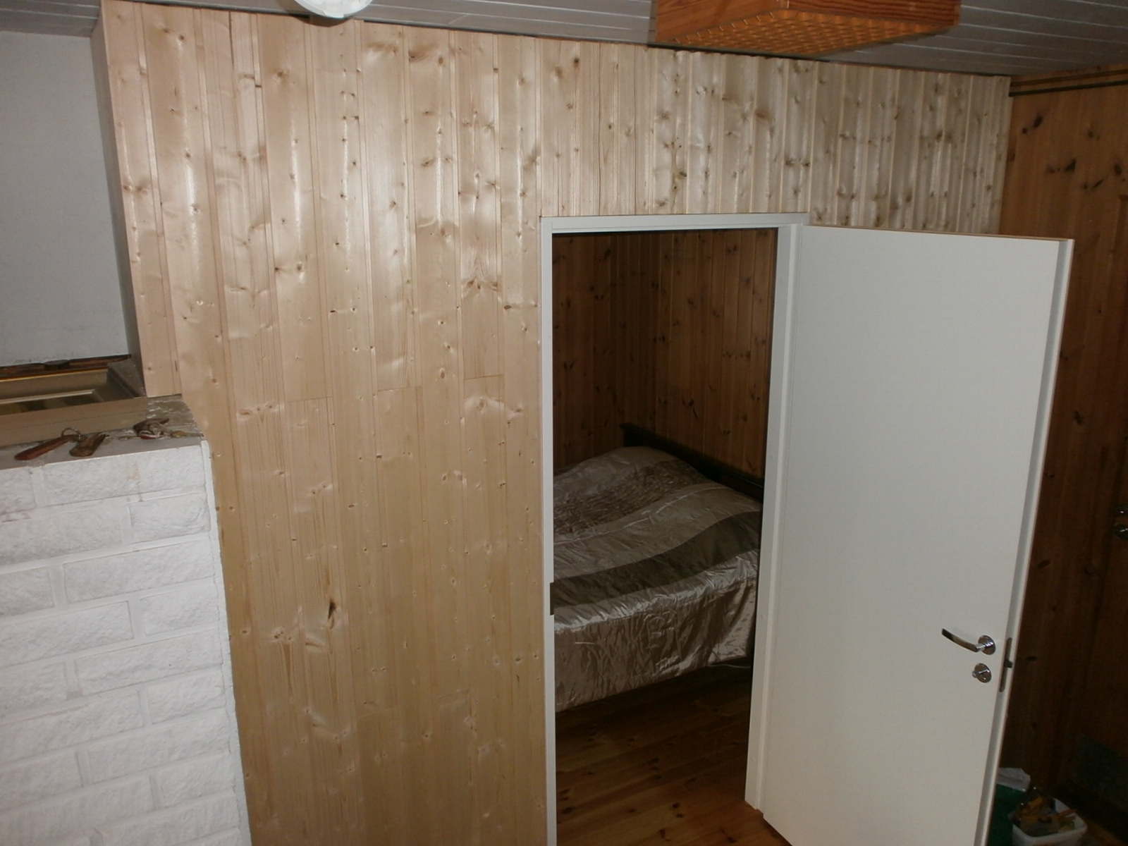 Asiakkaiden toivomuksesta tein mökin alakertaan makuuhuoneen. Nyt mökissäkin on makuuhuone, jossa voi olla muiden katseilta suojassa.